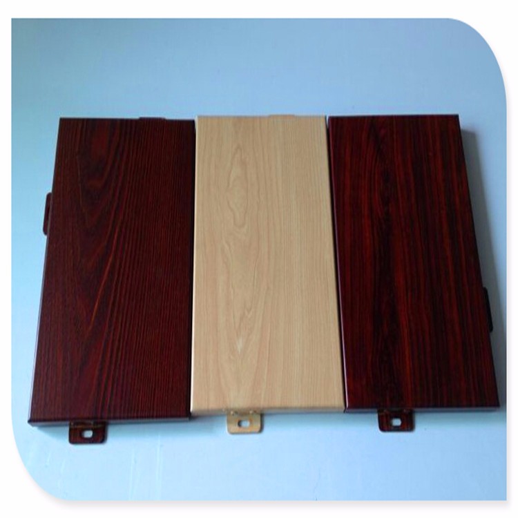 從規格上分為兩種:厚度在1.2mm以下的鋁單板可稱為鋁扣板,厚度在1.5mm以上的鋁單板稱為鋁單板。可根據設計的不同需求,加工成各種各樣復雜的造型。雖然沒有實木的手感,但是它外觀精致,效果逼真,而且木紋的顏色多種多樣,條路清晰、圖紋牢固耐磨,不含甲醛、無毒、無有害氣體釋放,是高檔建筑裝飾的常用材料。
